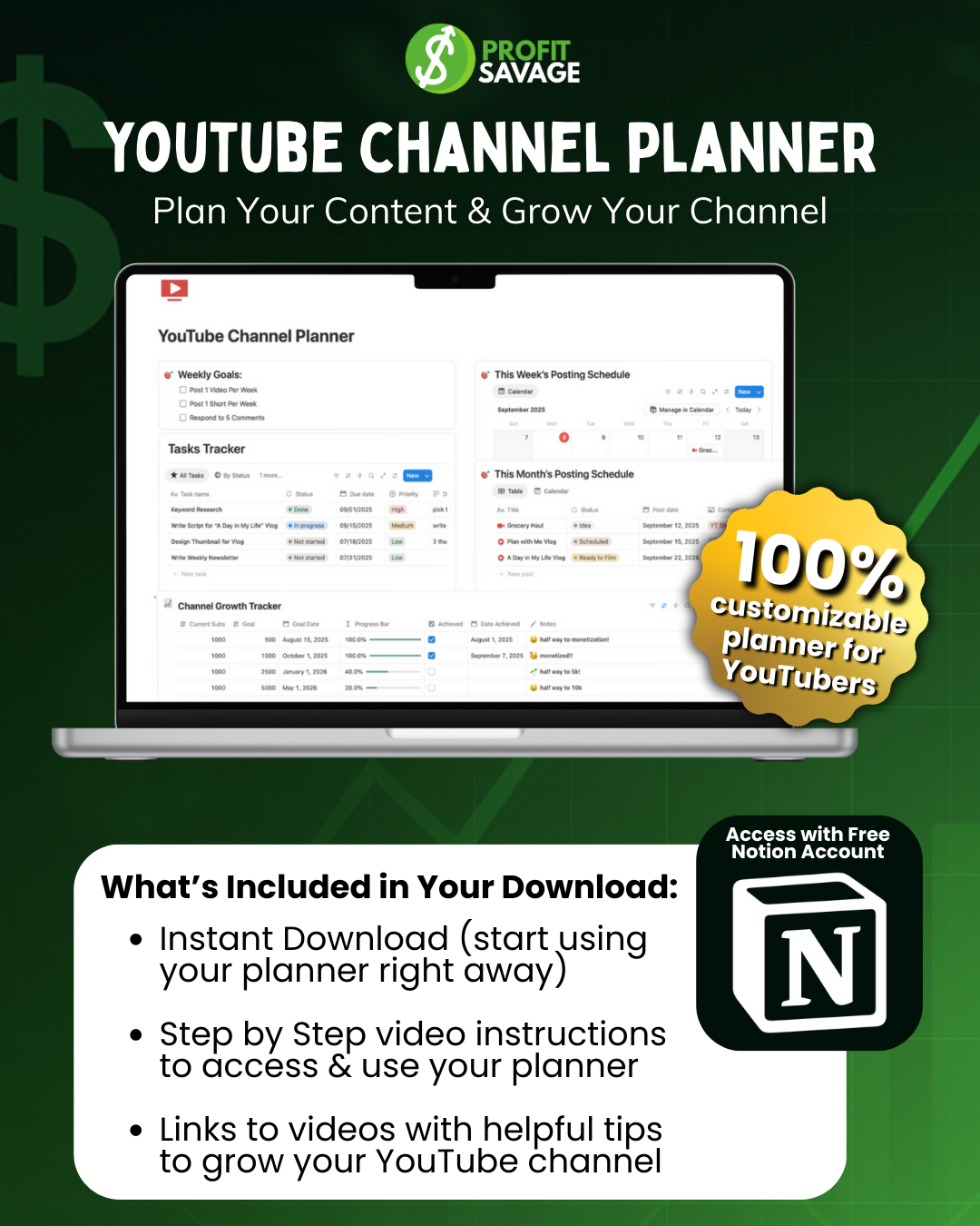 Take control of your YouTube growth with this fully customizable Notion template designed for content creators. The YouTube Channel Planner helps you organize video ideas, track growth, and manage your posting schedule all in one place.